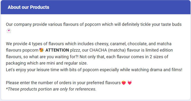 We take orders from our customer via Google Form during our pre-order seasons. The opening and closing date as well as the delivery date are announced on our marketing channels